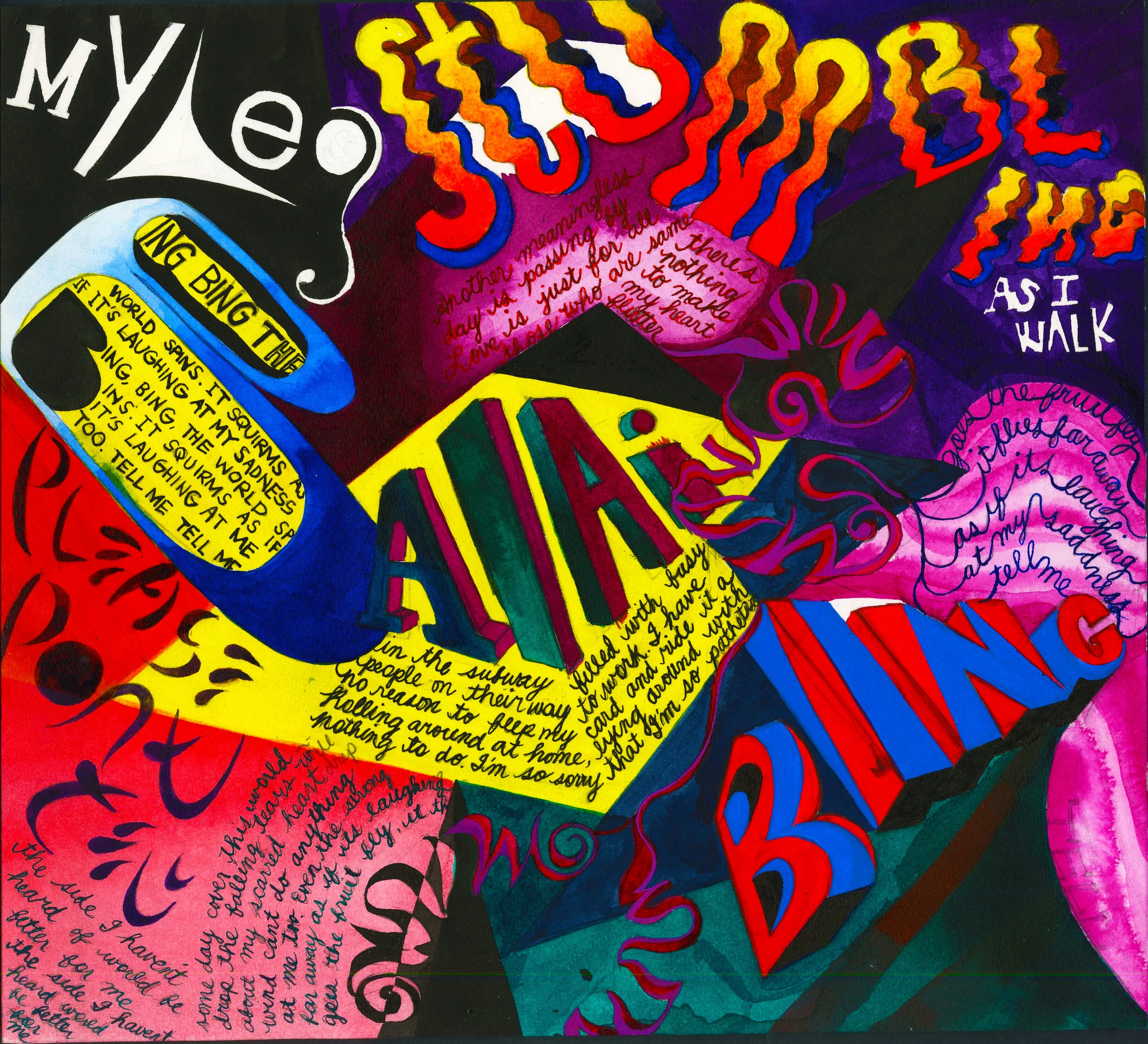 Lyric Project Choose a song and write the word relevant to its lyrics.Sophomore Drawing ClassProfessor: Sakura MakuMedium: Bombay Inks, sumi ink, calligraphy pen DesignJeehyun AnDecember 31, 2016design, art, drawing, sva